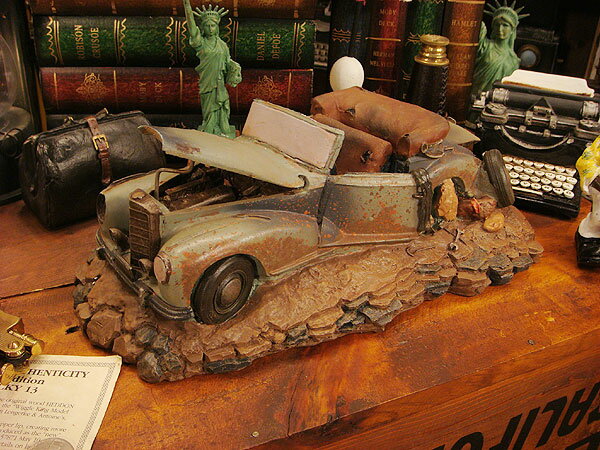 映画のワンシーンに登場しそうなボロボロの廃車をモチーフにしたオブジェです。 これぞまさに逆転の発想的商品!こういうシーンって探してもなかなか見つからないから絵になっちゃうんだよね!しかもオブジェとなったら、なおさら出会えそうにないヤツ!プラモ好きな人が自分でオンボロな雰囲気にしていくのもやっぱり憧れがあるから! 形成力のあるレジンを使って、長年廃車が置かれ寂れたシーンを見事に作り上げたのがコレなんです。古き良きアメリカなんて言葉が好きな人ならこういうのを待っていたはず! テーブルにコレを置くとまさにそんな雰囲気を撒き散らしてくれるんです。プラモみたいに技術がなくてもすぐに手に入っちゃうのがイ